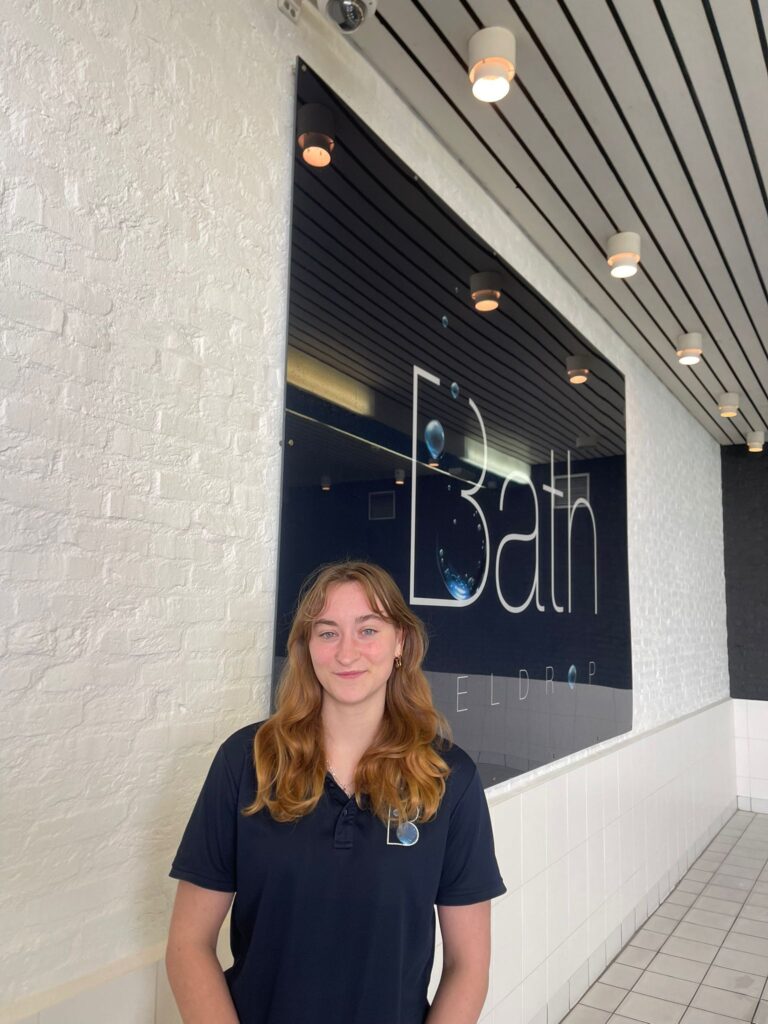 Mijn naam is Demi, ik ben 19 jaar en ben werkzaam als zwemdocent hier bij het leuke Bath.